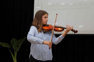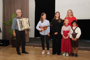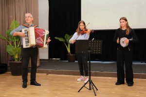 Društvo revmatikov Dolenjske te dni praznuje 40 let svojega delovanja. Na svečanem srečanju v Gostišču Loka je nekaj učencev sooblikovalo njihovo praznovanje. Nejc in Pia sta se kot navihana vaška otročaja zbadala z zabavnimi izštevankami. Jana in Zoja pa sta ob spremljavi glasbil predstavili dve deli Ferija Lainščka. Za konec je trio Končar zaigral nekaj ljudskih pesmi. Povabila nas je članica društva in naša nekdanja učiteljica slovenščine Lidija Skube.