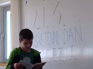 Take in podobne pesmi so v pesniškem recitalu brali šestošolci, ki so se s tem spomnili na svetovni dan poezije. UNESCO je namreč leta 1999 21. marec razglasil za svetovni dan poezije z namenom promoviranja branja, pisanja, objavljanja in učenja poezije po vsem svetu. Poezija je prostor, v katerem se srečujemo skozi besedišča vseh barv, ritmov in zvokov, ki ujamejo bistvo človeškega bitja, njegove občutke ter dialog in sporazumevanje.