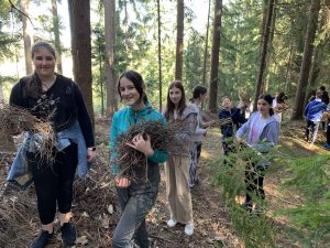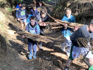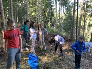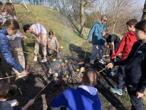 »Hop, hop« smo zjutraj poskakali na jutranjo telovadbo v prelepo mrzlo jutro, kjer smo se naučili tudi novo pesmico. Po skupinah smo nato odkrivali in spoznavali skrivnosti pohorskih kamnin in prsti, življenjsko pestrost ter se preizkušali v orientacijskih spretnostih. Po kosilu nas je čakalo športno popoldne, kjer smo tekmovali v lokostrelstvu, premagovali strah v plezanju in višini (nekateri tudi čisto do vrha) in pripravili ogenj za okusno malico. Ker pa nam energije nikoli ne zmanjka, smo se zvečer odpravili še na nočni pohod z lučkami. Za nami je dolg dan, vendar poln dogodivščin in novih spoznanj.