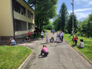 Učenci 2. b razreda smo obiskali prijatelje v šoli s prilagojenim programom. Skupaj smo se igrali, risali na asfalt in se zabavali.