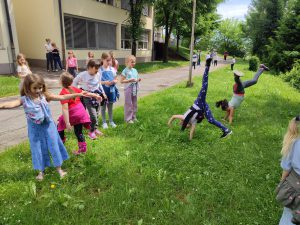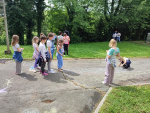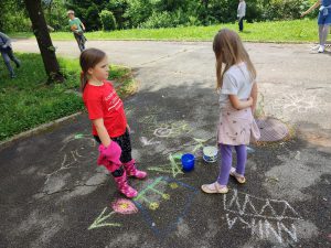 Učenci 2. b razreda smo obiskali prijatelje v šoli s prilagojenim programom. Skupaj smo se igrali, risali na asfalt in se zabavali.