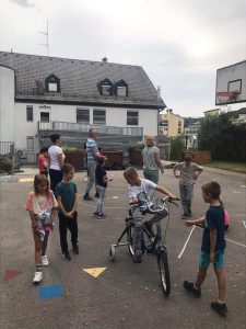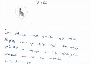 Septembra po vsej Sloveniji poteka projekt Nacionalni mesec branja, Beremo skupaj. Letos je poudarek na branju in gibanju. Učenci 3. b in 3. c so zato obiskali Varstveno delavni center Novo mesto (VDC). V šoli smo spregovorili o uporabnikih VDC, kjer so učenci spoznali, kakšne osebe tam živijo. V VDC-ju so najprej vsi skupaj poslušali pravljico, ki jo je prebrala knjižničarka, nato pa imeli uro gibanja (ogrevanje, metanje žoge, ciljanje tarče, koša, hoja po različnih črtah, posnemanje gibanja živali itd.). Pred koncem so učenci zapeli še nekaj pesmic. Za zaključek je bilo še sladko presenečenje. Taki obiski krepijo vezi med različnimi/drugačnimi in vsem udeležencem nariše smeh na obraze.