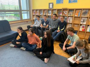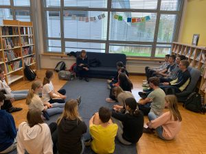 Pred srečanjem z zaposlenimi se je Jamnikova srečala tudi z učenci, ki so aktivno sodelovali s prebiranjem pesmi iz že omenjene zbirke.