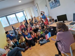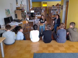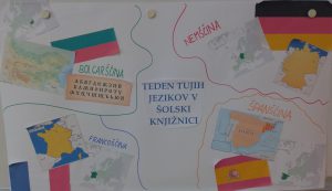 V šolski knjižnici smo teden namenili tujim jezikom. Učenci podaljašnega bivanja so poslušali predsatvitve tujih jezikov in nekaj dejstev o državah, kjer ta jezik večinsko govorijo. Poslušali so zgodbo ali pravljico v tujem jeziku, nato pa še v slovenščini. Spoznali lego države, grb in zastavo ter se naučili nekaj besed v izbranem jeziku. Nemčijo in nemščino je predstavila učenka Brina Luzar z branjem Bremenskih mestnih godcev. Barve v francoščini so se učenci naučili z učiteljico Petro Jenič, slišali smo tudi francosko zgodbo o murnu muzikantu. Bolgarijo in bolgarščino je na zelo zanimiv in prijeten način predstavila učenka Zara Mrzlikar. Na koncu tedna smo se podali v Španijo; Zverjasca, Španijo in španščino je predstavil učitelj Jose Fernandez Moyano.