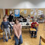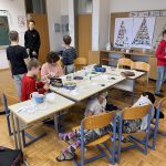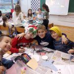 Vzdušje je bilo prijetno. Bili smo zelo kreativni in ustvarjalni. Okrasili smo si šolske prostore. Izdelovali smo izdelke za bazar. Imeli smo pogovor o praznikih, prebrali zgodbo Kje so doma dobri možje. Družili smo se z malimi prijatelji.