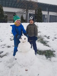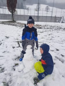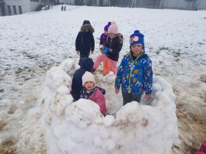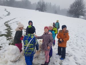 Letošnjega snega so se učenci zelo razveselili. V okviru podaljšanega bivanja so uživali v zimskih radostih na snegu. Občudovali so belo pokrajino, se dotikali snega, sezidali iglu, naredili snežaka in se kepali. Veseli so se vrnili v šolo. Izdelali so papirnate tople puloverje in skodelice čaja.