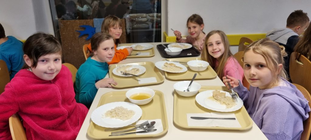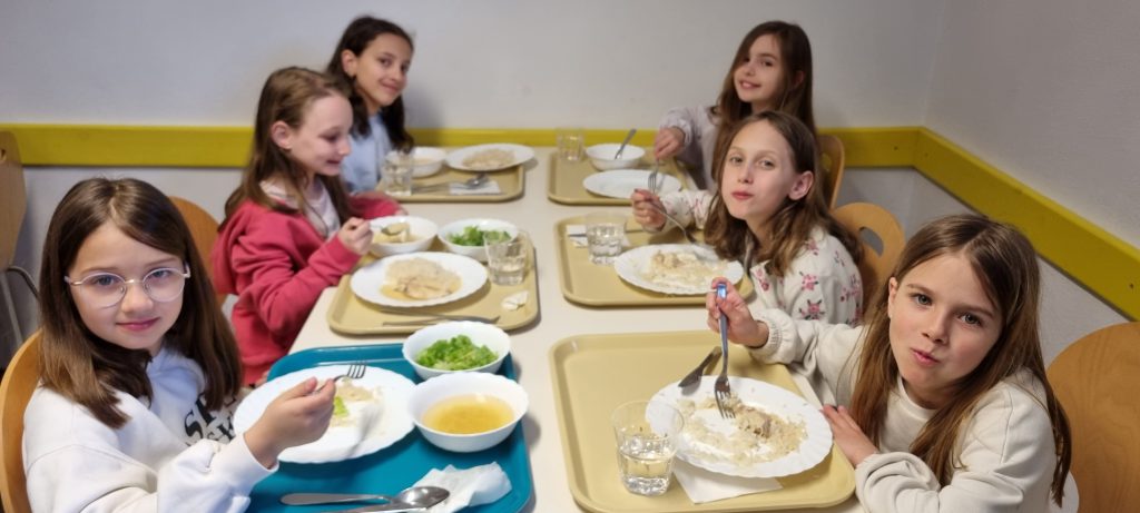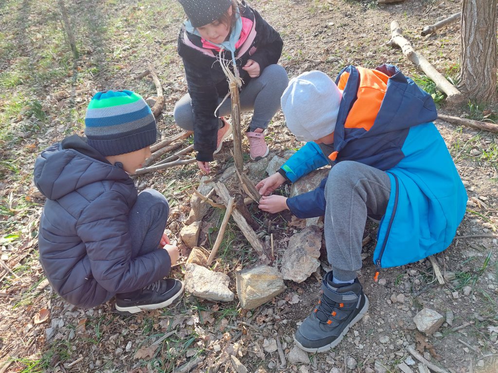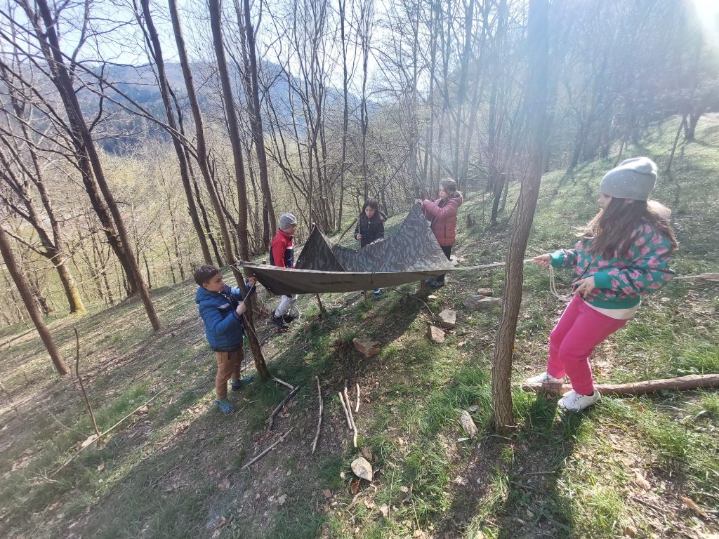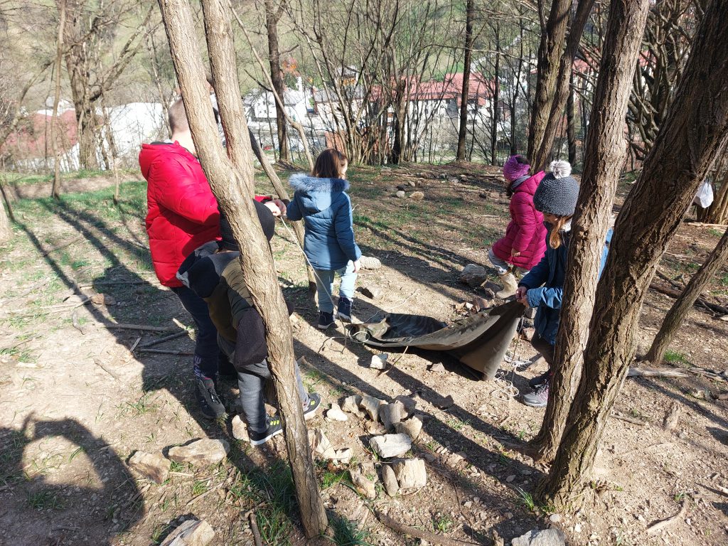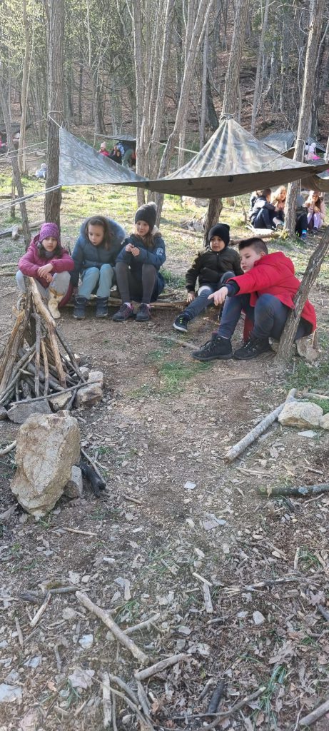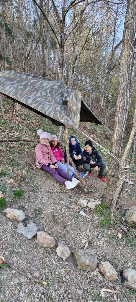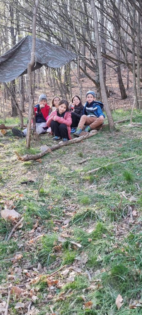 Za nami je že tretji dan šole v naravi. Vreme je kot naročeno za dejavnosti na prostem. Po dopoldanskem plavanju smo se popoldne povzpeli do gozdička, kjer smo postavljali bivake. Uporabili smo tudi naravni material, ki smo ga našli v bližini. Vse skupine smo bile s svojimi idejami izvirne in ustvarjalne. Po vrnitvi v dom smo si vzeli čas za družabne igre, po večerji smo smuknili v pižame, si umili zobe in z navdušenjem odšli v kamro na filmski večer. Utrujeni po vseh dejavnostih smo odšli v svoje sobe in hitro zaspali.