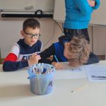 Današnje dopoldne smo preživeli na bazenu. Vsi smo v plavanju zelo napredovali. Po napornem plavanju nas je v domu že čakalo kosilo in presenečenje. Obiskala sta nas ravnateljica Natalija in hišnik Matjaž. Popoldan smo preživeli skupaj, saj sta z nami sodelovala na zanimivih delavnicah. Delali smo poskuse z vodo in gradili mostove. Po njunem odhodu smo povečerjali in vznemirjeni čakali večerno zabavo s plesom. Pred tem nam je učiteljica Simona podelila priznanja za uspešno opravljeno šolo v naravi in urejenost naših sob. Končno smo dočakali tudi težko pričakovani ples. Na plesu je lahko vsaka soba izbrala svojo pesem. Po plesu smo se pripravili na spanje in mimogrede pripravili še svoje kovčke.