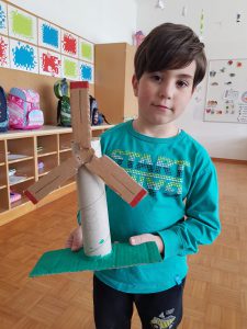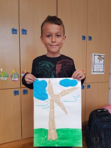 V današnjem času raznovrstnih informacijsko – komunikacijskih tehnologij, je ohranjanje odnosa do knjige še posebej nujno in pomembno. Projekt ekobranje za ekoživljenje spodbuja učence k branju literature z ekološko tematiko in tako prispeva k razvoju okoljskega izobraževanja. Z učenci podaljšanega bivanja 1.A OŠ Drska smo se odločili, da se pridružimo likovnem natečaju s temo PREHOD NA ZELENO (raba obnovljivih virov energije, okolju prijazna vozila, krožno gospodarstvo). Po prebranem gradivu z ekološko vsebino, smo se pogovarjali o obnovljivih virih, ki jih najdemo v Sloveniji. Razložili smo kako lahko sami skrbimo za lepši planet. Od vseh obnovljivih virov je učence najbolj pritegnila vetrnica, ki s pomočjo vetra ustvarja elektriko. Odločili smo se, da jo poustvarimo z različnimi likovnimi tehnikami.