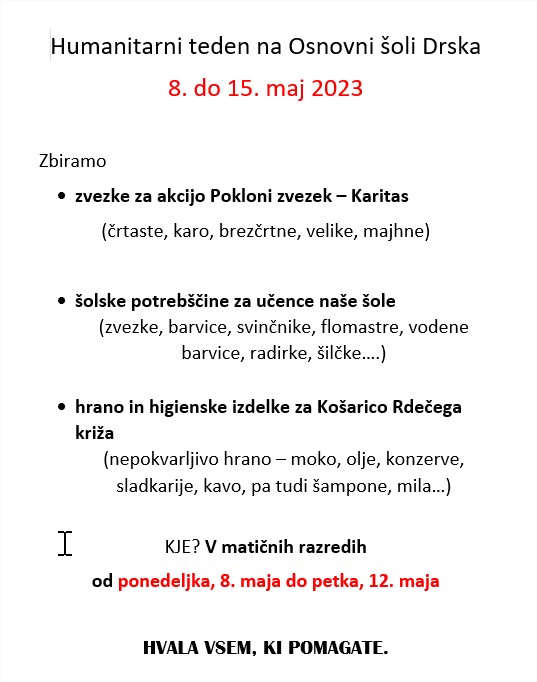 HUMANITARNI TEDEN NA OŠ DRSKA