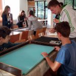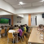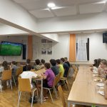 Tudi drug dan tabora za nadarjene je bil poln veselja. Že zgodaj zjutraj so učenci »skoraj« poskakali iz postelj in se odpravili na jutranjo telovadbo. Nato pa se je po okusnem zajtrku začelo aktivno dopoldne. Učenci so se naučili nov šport – disk golf in se preizkusili v tekmovanju z učiteljem. Hkrati so poskrbeli, da nas v mrzlih dneh ne bo zeblo, saj so izdelali svoje lastne sončne elektrarne. Tudi danes ni manjkalo časa za druženje, učenje novih družabnih iger in športnega dogajanja. Popoldne pa smo se z estetskim in digitalnim pristopom odpravili mimo Divjega potoka, uspešno opravljali različne naloge in se povzpeli vse do razgledne točke nad Črmošnjicami, kjer smo uživali v razgledu. Najhitrejši in tisti z največ energije so po spustu v dom pritekli z veliko prednostjo, ostali pa so v Divjem potoku opazovali rake koščake, ki so ena najbolj ogroženih evropskih vrst rakov. Zvečer nismo pozabili na nogometno vzdušje in smo v en glas navijali za slovensko reprezentanco. Dan smo končali s skupnimi, zabavnimi, miselnimi igrami, kjer ni manjkalo preizkušnja refleksov, ugibanja, zagovorov, argumentov in obilo smeha.