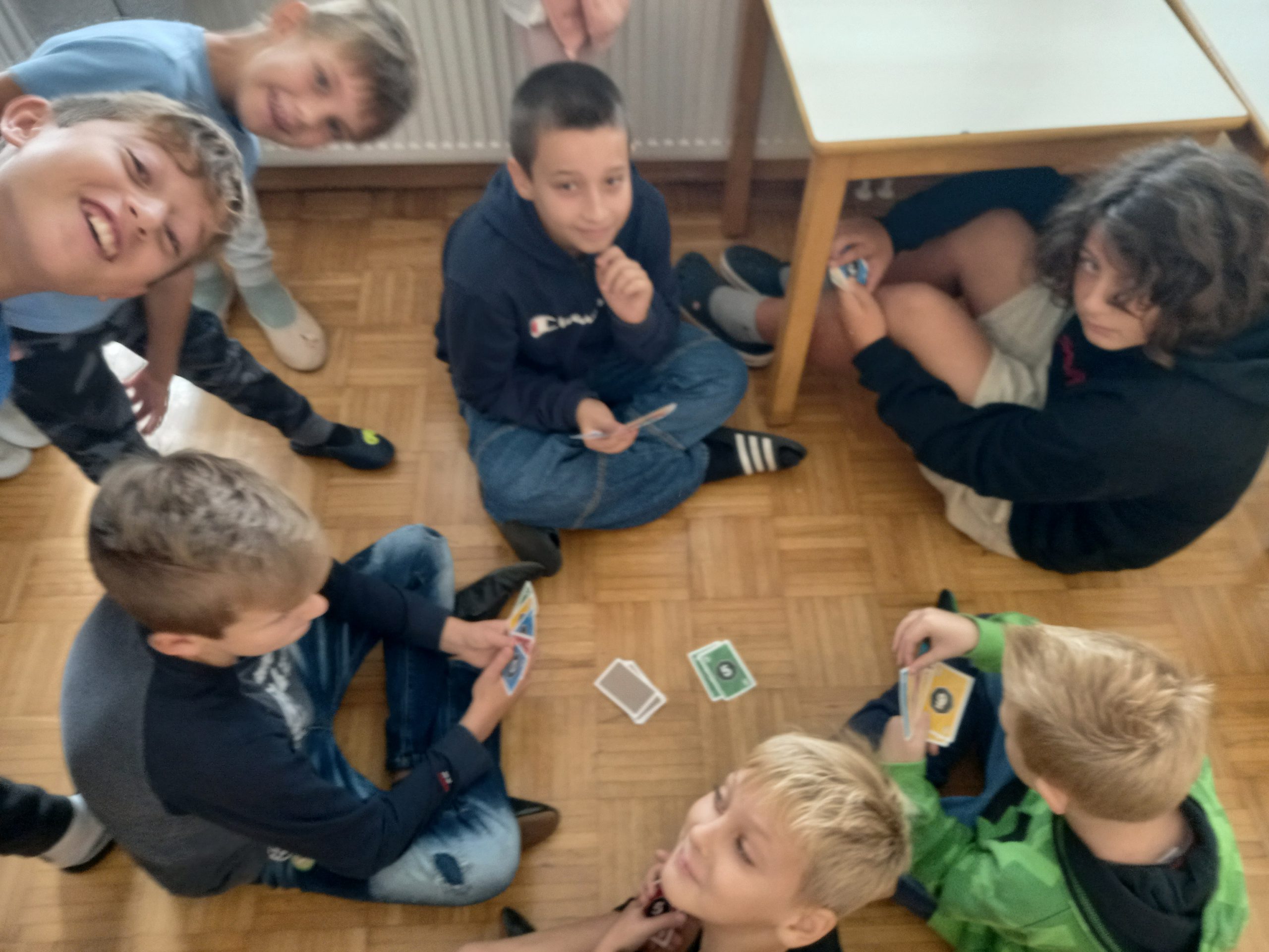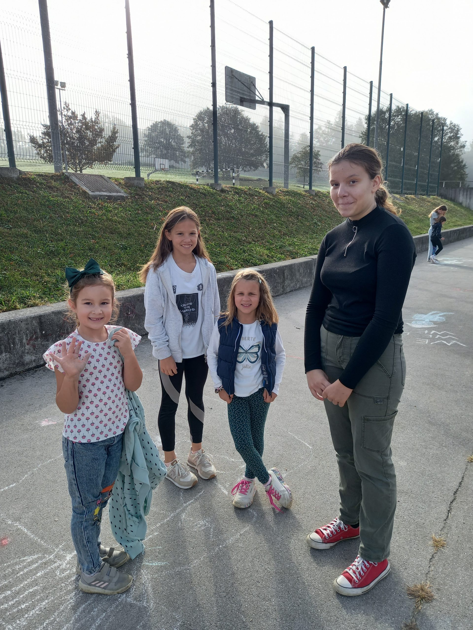 Naši razredničarki smo cel teden omenjali, kako se bi z njimi ponovno dobili. Z učiteljico smo se dogovorili, da jih ponovno obiščemo. Na ta dan smo odšli v njihov razred in se z njihovo učiteljico dogovorili, da odidemo ven na šolsko igrišče. Na igrišču smo se lovili, pogovarjali, igrali badminton…Med seboj smo se hitro navezali. Zelo smo uživali v njihovi družbi in upamo, da se bomo kmalu znova videli.