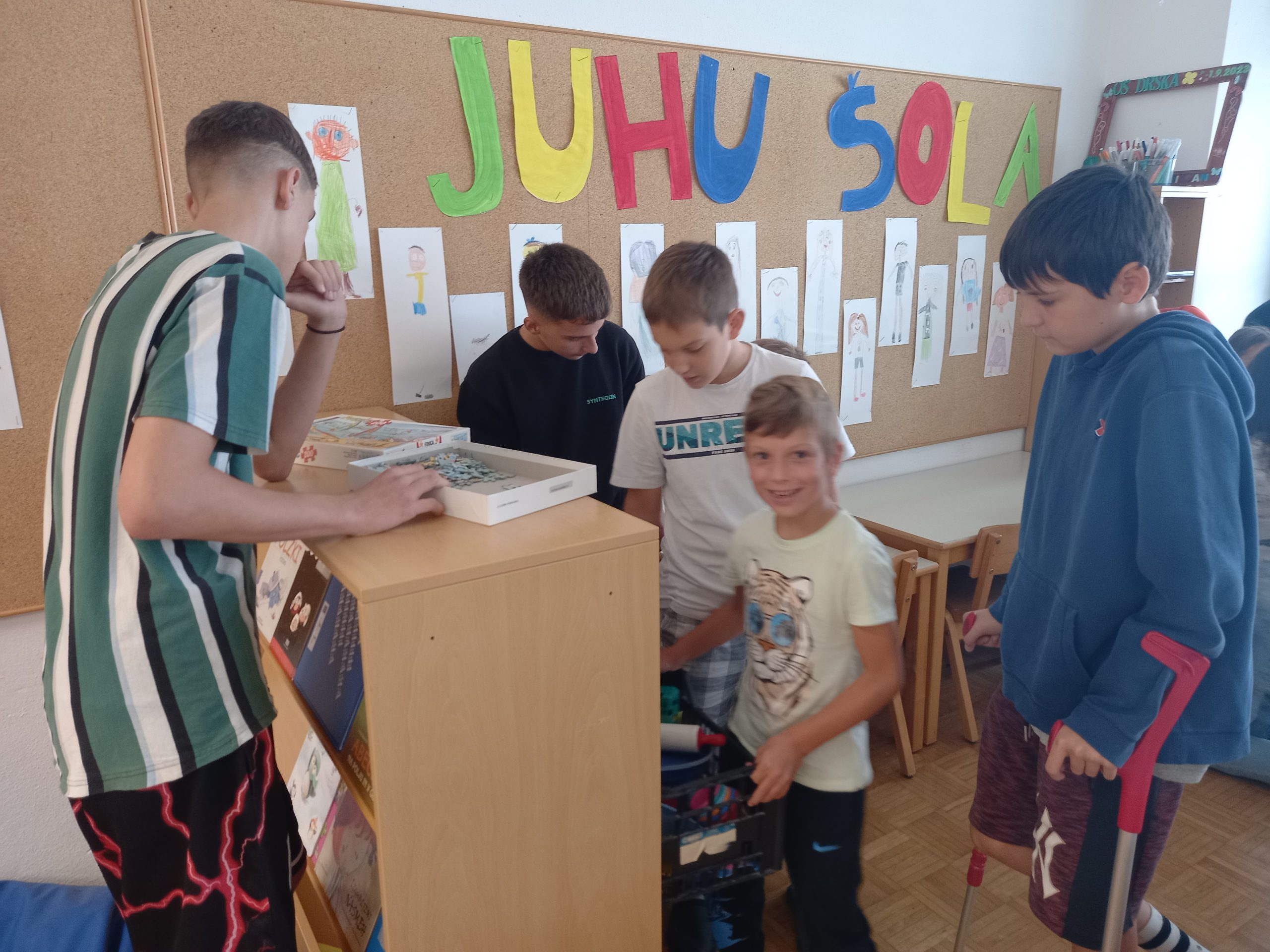 Ko smo vstopili, nas je celoten 1. a gledal z iskricami v očeh in velikim nasmehom. Na njihovih obrazih je bilo lahko razbrati, da so se veseli. Najprej smo se mi veliki prijatelji predstavili malim prijateljem, nato pa še oni nam. Nato smo mi veliki prijatelji morali izbrati enega učenca. Majhni prijatelji so nas objeli. Ko smo se veliki z majhnimi spoprijateljili, smo se v njihovi učilnici igrali. Nekateri so se kartali, igrali namizne igre, risali, med tem ko so se nekateri le pogovarjali. Šolska ura je minila prehitro.