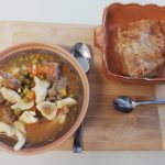 Tradicionalno kosilo: telečja obara z žličniki in jabolčni zavitek, kruh in pogače. Vse to so pomagali pripravljati učenci izbirnega predmeta SPH in učenci 6.c, ki sodelujejo v projektu Kuhnapato.