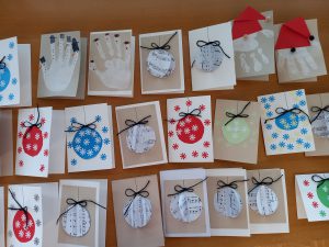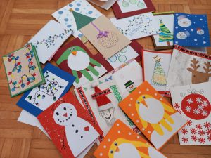 Učenci in učenke naše šole te dni dokončujejo voščilnice z ročno napisanimi voščili, ki jih bodo prostovoljke KORK Drska priložile novoletnemu darilu. Voščilnice, ki so jih učenci od 1. do 9. razreda izdelovali v okviru pouka likovne umetnosti, jutranjega varstva, podaljšanega bivanja in na tehniškem dnevu, so res zanimive in raznolike, kar se lahko prepričate tudi vi.
