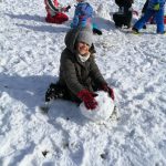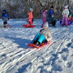 Puhasta snežna odeja nas je že navsezgodaj zjutraj mamljivo vabila, da se zakopljemo vanjo. Pa smo drugošolci oblekli svoja zimska oblačila, si obuli tople čevlje in na glave potisnili tople kape. Nataknili smo si nepremočljive rokavice in s sanmi odhiteli na griček za šolo. Kako prijetno je škrtalo pod nogami, ko smo gazili po celem snegu in iskali kotiček za naše zimsko veselje. In smo jo našli – idilično, s soncem obsijano, ne preveč strmo in ne predolgo belo dolinico v zavetju gozdička. Stekli smo do vrha grička in komaj čakali, kdaj se bomo lahko spustili. In smo se! Bilo je čudovito. Cela dolina je bila naša. Tekali smo, se kepali, kotalili. Naredili smo nekaj snežnih skulptur. Čas je res prehitro minil. V šolo smo se vrnili dobre volje in mokri, a ne od snega. Od potu, ki nam je tekel po hrbtih zaradi prijetnega sončka in več sto korakov, ki smo jih ta dan naredili.