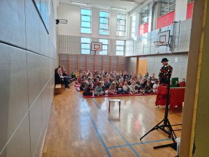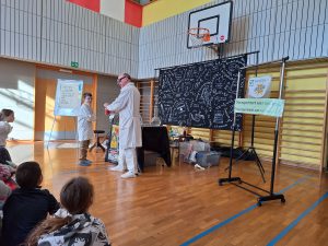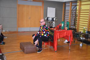 V torek in sredo, 6. in 7. 2. 2024, je na naši šoli gostoval gospod Schelie Nielsen z umetniškim imenom Dr. Klutz, ki je za učence od 1. do 9. razreda izvedel različne predstave v angleškem jeziku.