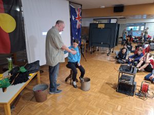 V sredo, 7. 2. 2024, nam je Dr. Klutz na zabaven način opisal Avstralijo. Predstavil je živali Avstralije, njene prvotne prebivalce in njene geografske značilnosti. Poskusili smo Vegemite, ki je bil slabega okusa. Dr. Klutz nas je presenetil, ko je začel plesati ples Aboriginov. Predstava je bila zelo zabavna, poučna in zanimiva.