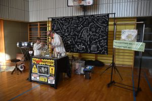 V torek, 6. februarja, je našo šolo obiskal gospod iz Avstralije. Ker je govoril v angleščini je predstava potekala malo drugače. Oblečen je bil v belo haljo, na glavi pa je imel velika, smešna očala. Pokazal nam je nekaj poskusov. K sebi na oder je poklical nekaj učencev, ki so bili njegovi asistenti. Naučili smo se tudi nekaj novih angleških besed. Najbolj mi je bil všeč poskus, ko je skozi plastično vrečko polno vodo potisnil dva svinčnika in pri tem se voda ni razlila. Všeč mi je bilo tudi, ko je v kozarec zmešal red bull, kokakolo in mleko. Po petih minutah je na oder poklical njegovega asistenta, ki je nastalo pijačo tudi poskusil. Kasneje smo jo lahko poskusili tudi ostali, vendar je jaz raje nisem. Menda je imela okus po smetani. Na koncu predstave smo ga vsi nagradili z močnim aplavzom, ki si ga je seveda zaslužil. Mislim, da nisem edina, ki bi si to predstavo ogledala še enkrat.