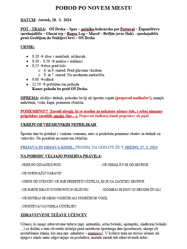 ŠPORTNI DAN. POHOD. PREDMETNA STOPNJA