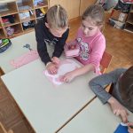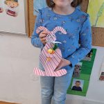 S pomladjo se vsi razveselimo velikonočnih praznikov, še posebej otroci. Pravijo, da čakajo zajčkovo noč. Otroci si ne zapomnijo vsega, kar jim povemo ali pripovedujemo, zagotovo pa jim za vedno ostanejo v spominu izkušnje, ki jih lahko sami doživijo. Zato smo tudi v podaljšanem bivanju kar se da kreativni in urimo naše prstke. Tokrat smo ustvarili simpatične velikonočne zajčke, kateri naj krasijo mize, polne velikonočnih dobrot.