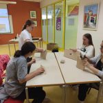 23. 5. 2024 smo učenci 8. a razreda po 1. šolski uri obiskali RIC. Tam nas je pričakal profesor Srednje lesarske šole. Najprej nam je pokazal videoposnetek o Gradbeni, lesarski in vzgojiteljski srednji šoli, ter nam tudi kaj več povedal o programu, ki se tam izvaja. Nato pa smo v skupinah izdelovali pručke. Mislili smo, da bo to «mala malica«, vendar se je naše mnenje kmalu spremenilo, saj brušenje, lepljenje in sestavljanje, predvsem pa sodelovanje, niti približno ni tako lahko. Ko nam, je uspelo končati, smo bili vsi zadovoljni s svojimi izdelki. Zelo prijetno pa nas je presenetila tudi malica, saj smo se lahko posladkali z rogljičkom in sokom.