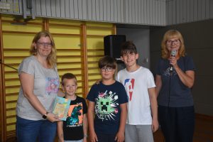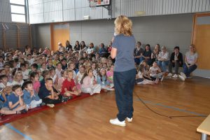 Učenci, bralci za bralno značko, so imeli slavnostni zaključek branja s pisateljico in scenaristko Janjo Vidmar. V dveh ločenih nastopih za nižjo in posebej višjo stopnjo je predstavila nekaj zgodb iz vsakdanjega življenja. Tako je povedala, da pisatelji po večini ne vedo, kakšno sporočilo nosi njihova knjiga, da ji pri pisanju pomagata dva mačkona, da ima rada NK Maribor in obožuje čokolado s celimi lešniki. V zabavnih igrah so se pomerili tudi učenci in šoli priborili dve knjižni nagradi.