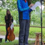 V soboto, 1. junija, smo se pridružili Knjižnici Mirana Jarca, ki je organizirala že deveti literarni pohod po poteh Janeza Trdine. Tokrat smo se sprehodili kar po Novem mestu. Zbrali smo se v Parku Rastoče knjige, kjer so se nam pridružili tudi pohodniki iz Karlovca. Odpravili smo se v smeri Glavnega trga mimo hiše, v kateri je nazadnje bival Janez Trdina in nadaljevali pot proti gradu Grm, nato pa se mimo Težke vode podali do Doma krajanov v Regrči vasi, kjer nas je čakal bogat kulturni program, na katerem sta nastopila tudi osmošolca Leon Grandovec v vlogi Janeza Trdine in Tinkara Badovinac z glasbeno točko. Povzpeli smo se še do sv. Roka in pot nadaljevali do Šmihela in Drske proti Brodu ter po sprehajalni poti do Portovala po Julijni poti proti Bregu, kjer nas je pred rojstno hišo Božidarja Jakca pričakala pravcata slikarska kolonija. Čudovito! Po krajšem kulturnem programu smo se vrnili proti izhodišču našega pohoda. Tam nas je čakal prijeten zaključek, na katerem so nas pogostili z okusno enolončnico in glasbeno točko našega glasbenika Borta Rossa.
