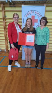 Rebeka je priznanje za naj prostovoljko dobila na prireditvi Rdečega križa v torek, 10. 6.