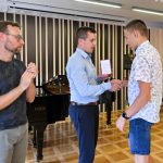 Tudi v glasbenem delu programa je sodeloval učenec 9. razreda naše šole. Matija Forjan obiskuje 8. razred Glasbene šole Marjana Kozine in od mentorstvom prof. Damjana Brcarja je nastopil na klavirju. Tudi Matija je prejel Županovo petico za področje glasbe.