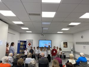 V torek, 1. 10. 2024, so učenci 3. c razreda sodelovali pri kulturni prireditvi ob Dnevu starejših na Območnem združenju RKS Novo mesto, z naslovom Druženje ob modri palici. Kot je v programu povedala upokojena učiteljica OŠ Drske Lidija Skube, takšno medgeneracijsko sodelovanje notranje bogati tako starejše, kot najmlajše občane ter prinaša kakovostno in aktivno življenje za obe generaciji.