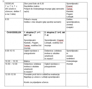 Zbor učencev pred šolo je ob 8.10., vrnemo se do 13. ure. Malico bodo prevzeli v šoli.