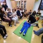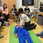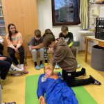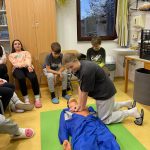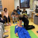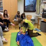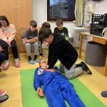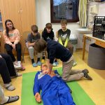 “Učiteljica Monika nam je še pokazala pravilo oziroma vrstni red, kako ravnati, če je človek nezavesten ali če se mu ustavi srce. To pravilo se imenuje VODDO (varnost, odzivnost, dihalna pot, dihanje, obtok). Še sami smo se preizkusili v masaži srca na lutki.” (Pia)