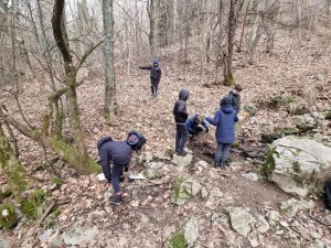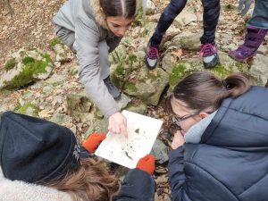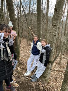 na Livških Ravnah je prelepo. Čeprav stoji Dom Kavka na 1045 m nadmorske višine, nam hladno vreme ne more do živega. Vsak dan imamo druge aktivnosti. V torek nas je prijazni učitelj Matjaž popeljal v Kavkno jamo, kjer smo se preizkusili v znanju krasoslovja. Narava je skozi tisočletja ustvarila neverjetne kraške pojave, sonce čez krater brezna pa nam je naslikalo pravcatega medveda. Ne verjamete? Preverite na eni spodnjih fotografij.