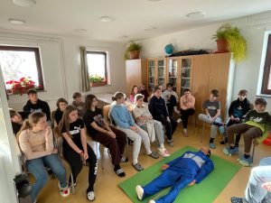 Današnje dopoldne je bilo naravoslovno in športno obarvano. Spoznavali smo (ne)oporečnost vode na osnovi bioidentifikatorjev (vodnih živali) ter se sprostili z igranjem odbojke, košarke, nogometa. Nekateri so se pomerili v lokostrelstvu.