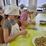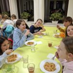 Danes smo spoznavali značilno idrijsko jed – idrijske žlikrofe. Pa ne samo to, pripravili smo jih tudi za kosilo, ki je bilo naravnost odlično. Hkrati smo se naučili delati vozle in vezave, ki nam bodo prišle prav v vsakdanjem življenju, na primer pri delanju gugalnic in splavov. Popoldanski del današnjega dne je bil namenjen tudi povezovanju in spoznavanju znotraj posameznih oddelkov skozi različne igre. Pred zadnjim dejanjem deževnega dne smo zaploskali najboljšima lokostrelcema včerajšnjega tekmovanja – Lani in Timu. Večer je bil poln smeha, družabnih iger, igranja namiznega tenisa, plesanja, petja in še mnogo več.