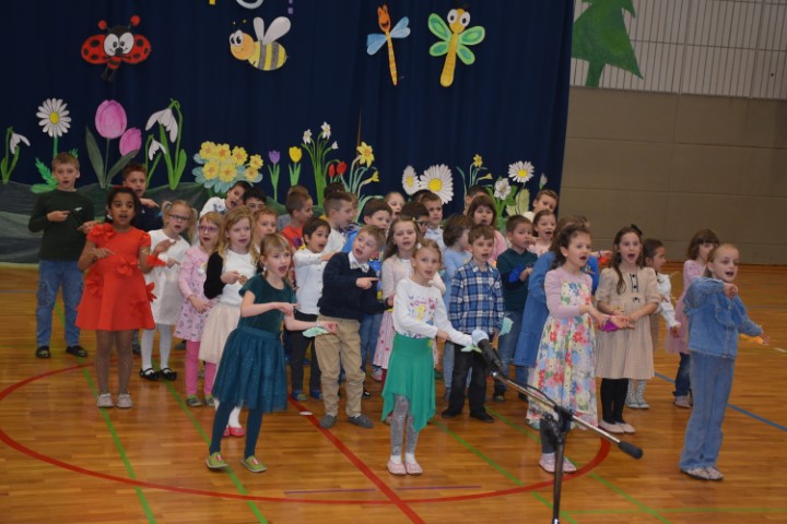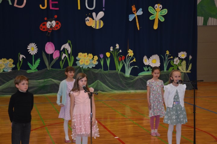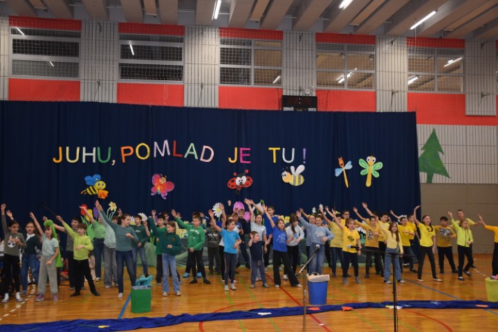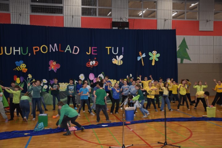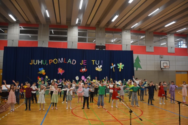V torek, 11. marca, so učenci od 1. do 4. razreda vabili na pomladno prireditev Juhu, pomlad je tu! Dopoldne so na generalki nastopi za goste iz VDC-ja in vrtca, popoldne pa za svoje družine. Otroški pevski zbor je zapel tri pesmi, s svojimi točkami v plesu in petju so se predstavili učenci od 1. do 4. razreda, na koncu pa so se vsi povezali v skupni pesmi Otroci enega sveta. Energični, topli in prisrčni nastopi učencev so vsem zbranim polepšali dan. Sedaj pa res že komaj čakamo, da pride pomlad in zakličemo:« Juhu, pomlad je tu!«