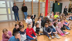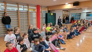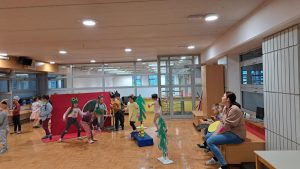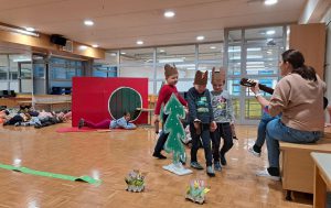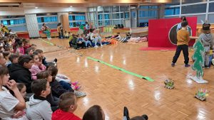 Danes je bil za nas malo drugačen petek. Na gledališko predstavo so nas povabili otroci iz vrtca Sapramiška, skupina Mavrice. Pod vodstvom vzgojiteljic so nam zaigrali pravljico Mojca Pokrajculja.