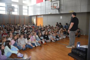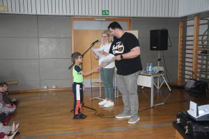 Priznanje je podelil Boštjan Gorenc – Pižama; pesnik, pisatelj, prevajalec in raper. Mlajšim je predstavil svoja dela – Kaj se skriva očku v bradi, Si že jezdil morskega konjička?, Učitelj Sova in druge. Starejšim pa je več povedal o zagatah prevajanja Pasjega moža in kapitana Gatnika.