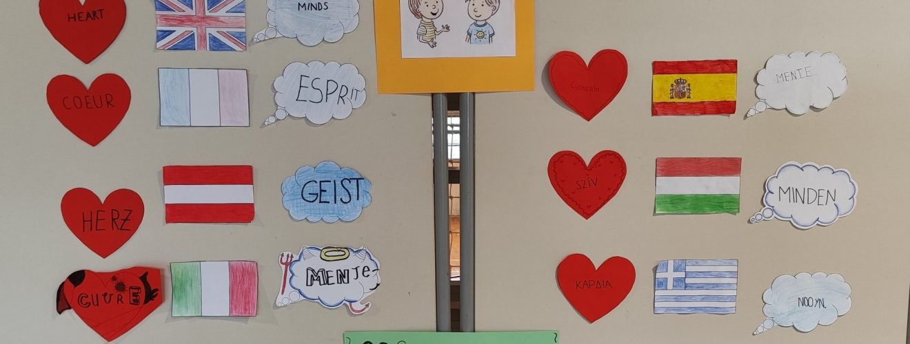 Tudi v 5. razredu smo v sklopu ur angleščine obeležili evropski dan jezikov. V skupinah smo se odpravili raziskovat zastave tujih držav in njihov jezik s pomočjo spletnega slovarja, kjer smo lahko prebrali in poslušali izgovor. Iskali smo dve besedi SRCE in MISLI, ki sta glavni vodili letošnjega gesla: