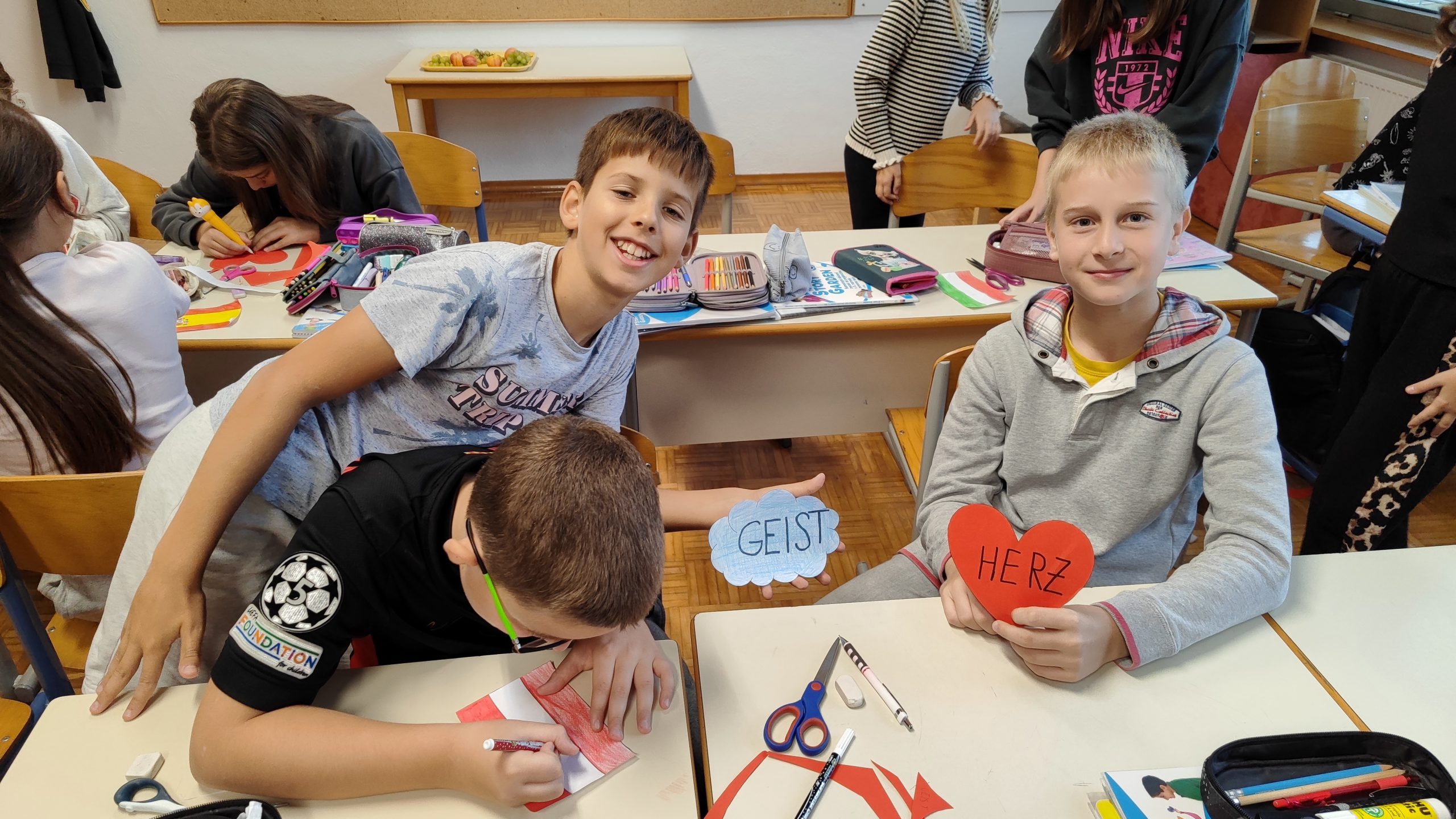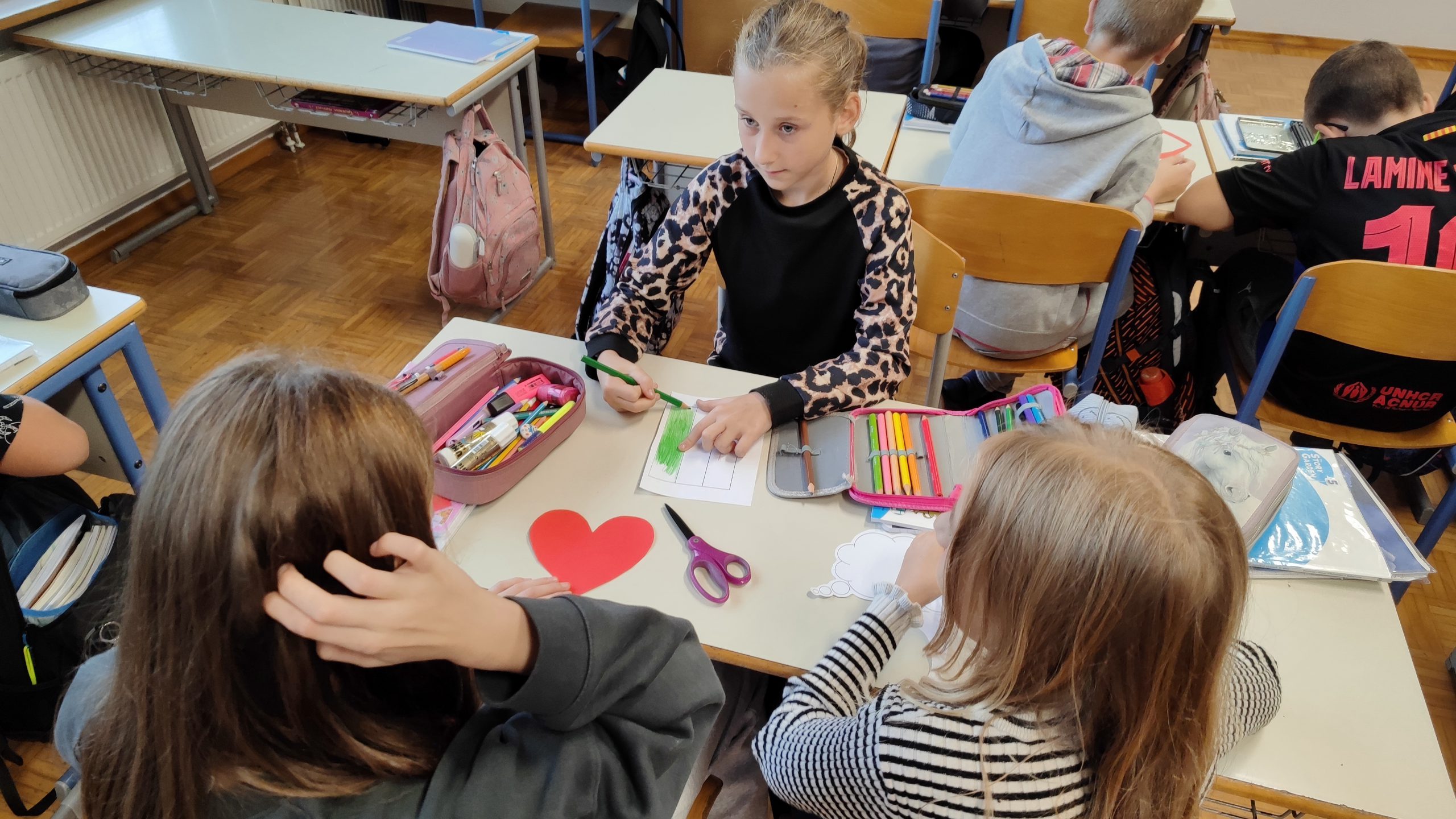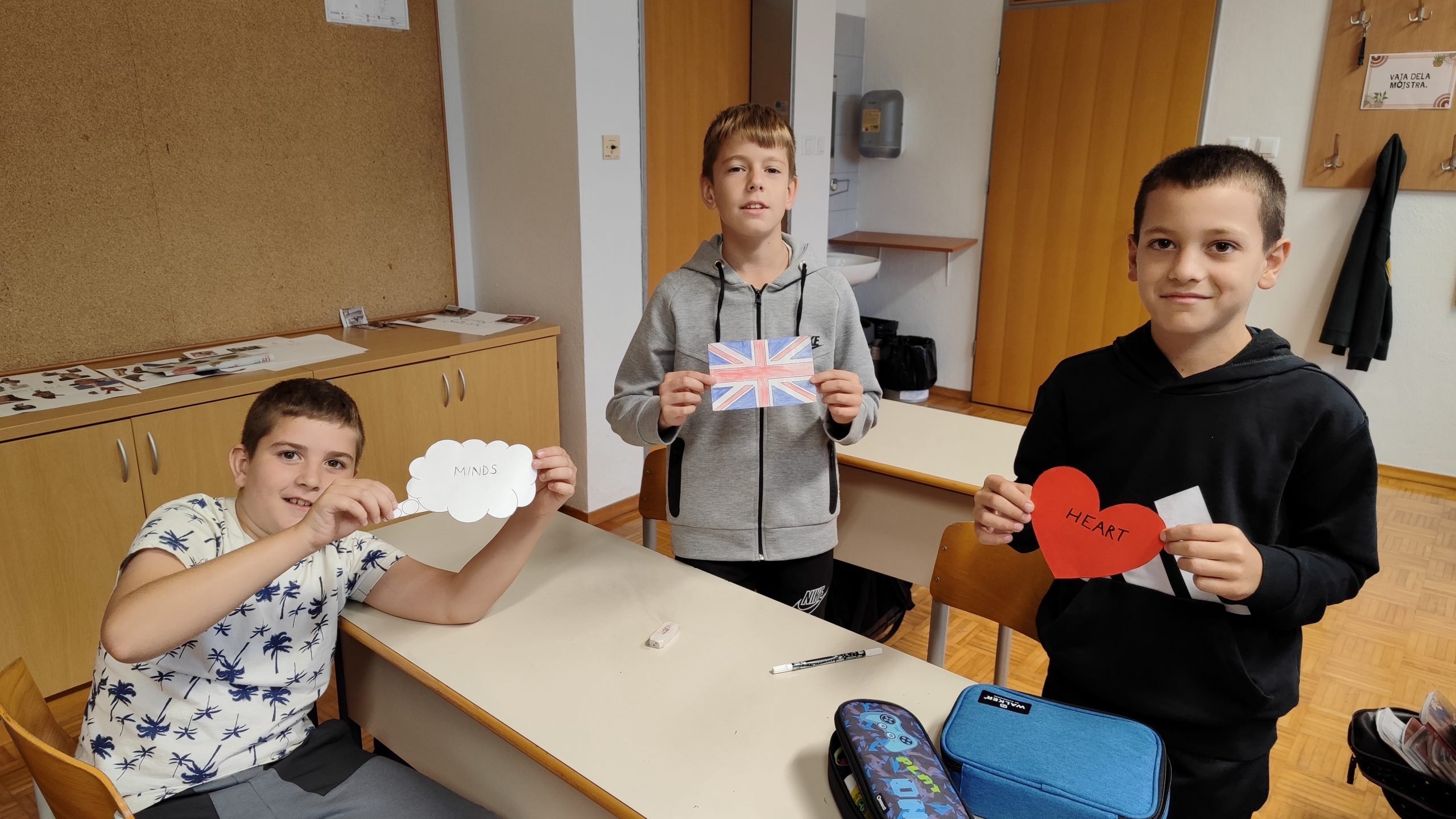 Tudi v 5. razredu smo v sklopu ur angleščine obeležili evropski dan jezikov. V skupinah smo se odpravili raziskovat zastave tujih držav in njihov jezik s pomočjo spletnega slovarja, kjer smo lahko prebrali in poslušali izgovor. Iskali smo dve besedi SRCE in MISLI, ki sta glavni vodili letošnjega gesla: