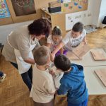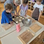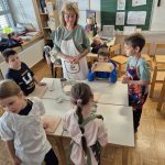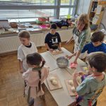 Danes je na naši šoli zadišalo po kruhu. Učenci 1. d so pekli žemljice. Na pomoč so jim priskočile babice treh učencev. Vsaka je ubrala svoj način priprave testa, rezultat pa je bil pri vseh enak – žemljice so bile odlične.