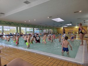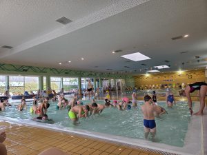 Popoldne smo preživeli v bazenu. Nadaljevali smo s tečajem plavanja, pogumnih spustih po toboganu, iskanju brisač, spodnjega perila in suhih oblačil. Po dobri večerji pa smo se kljub utrujenosti podali na nočni sprehod z lučkami, kar je zopet neko posebno doživetje..