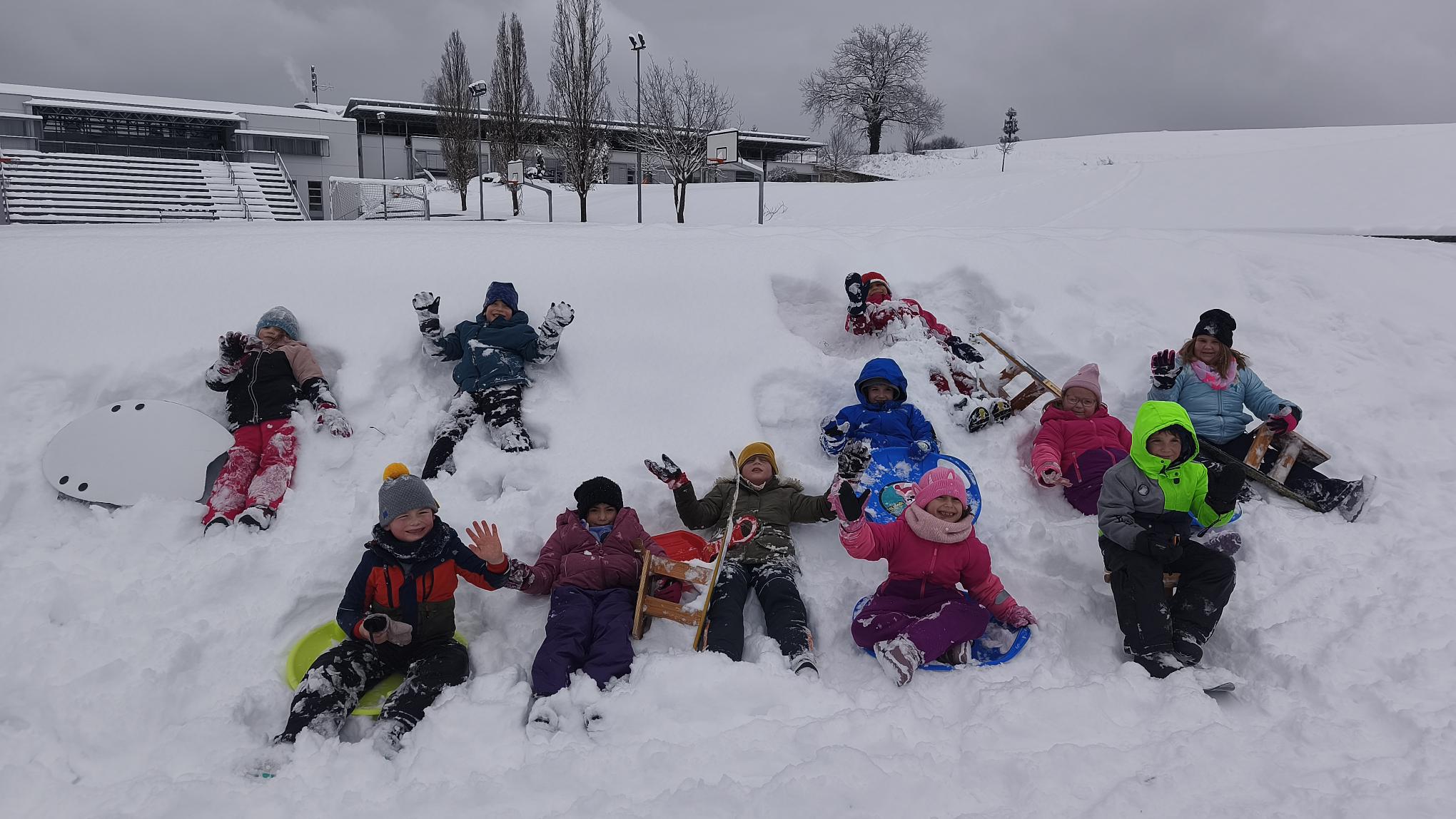 LINA, 1. D: Kotalili smo se po snegu in sankali.
