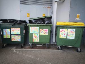 Že zjutraj so na smetnjake prilepili svoje likovne izdelke z iskrenimi sporočili hvaležnosti, spoštovanja in prijaznih misli. Nato so z velikim pričakovanjem čakali pred vhodom šole, da bi se lahko zahvalili ljudem, katerih delo pogosto ostane spregledano.