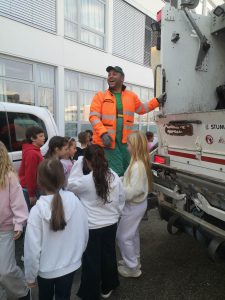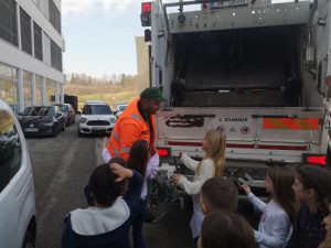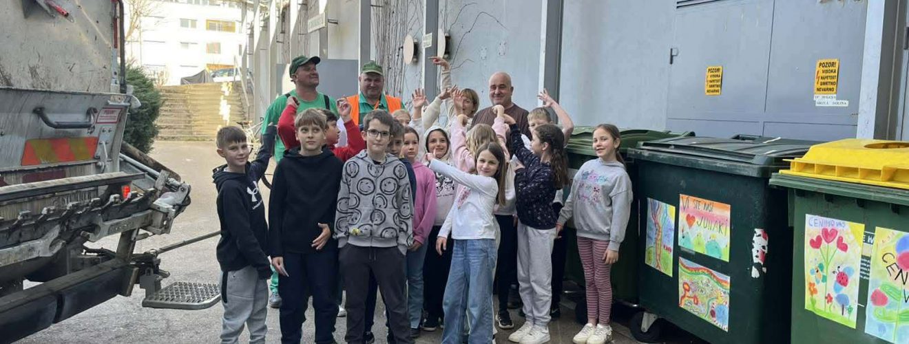 Ko so smetarji prišli izpraznit smetnjake, so jih učenci glasno in veselo pozdravili s priredbo pesmi Vse najboljše. Na ves glas so peli: »Hvala, cenimo vas!«, in tako spremljali njihovo delo. Vidno presenečenim in ganjenim delavcem so zapeli še pesem Smetko Jazz, ki so se je nedavno naučili pri pouku.